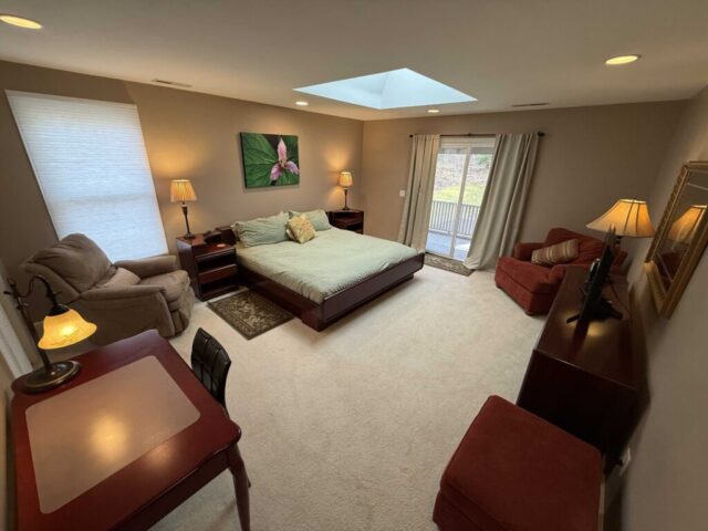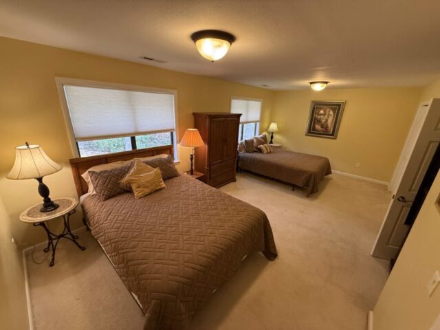 The Harvest House has 3 bedrooms with 3 full bathrooms.
