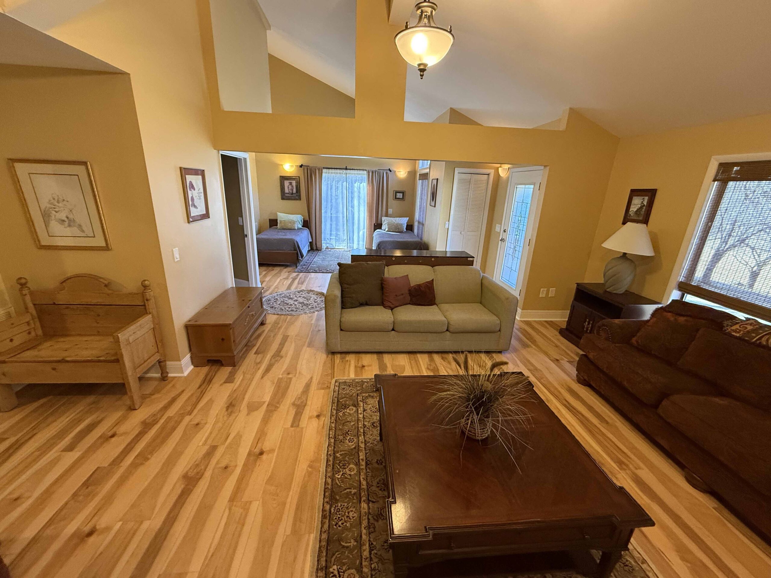 There is paved access to the Harvest House along with an attached garage. Guests have access to the outdoor pool and hot tub. Enjoy the full service kitchen, screened back porch, creek, and wifi.